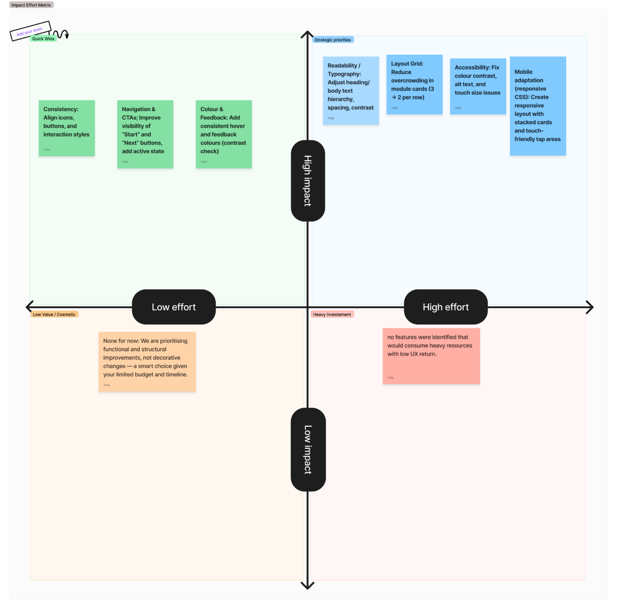 The proposed improvements focus on clarity, accessibility, and consistency, prioritising changes that can be applied across multiple screens and deliver the highest user impact within a limited timeframe.