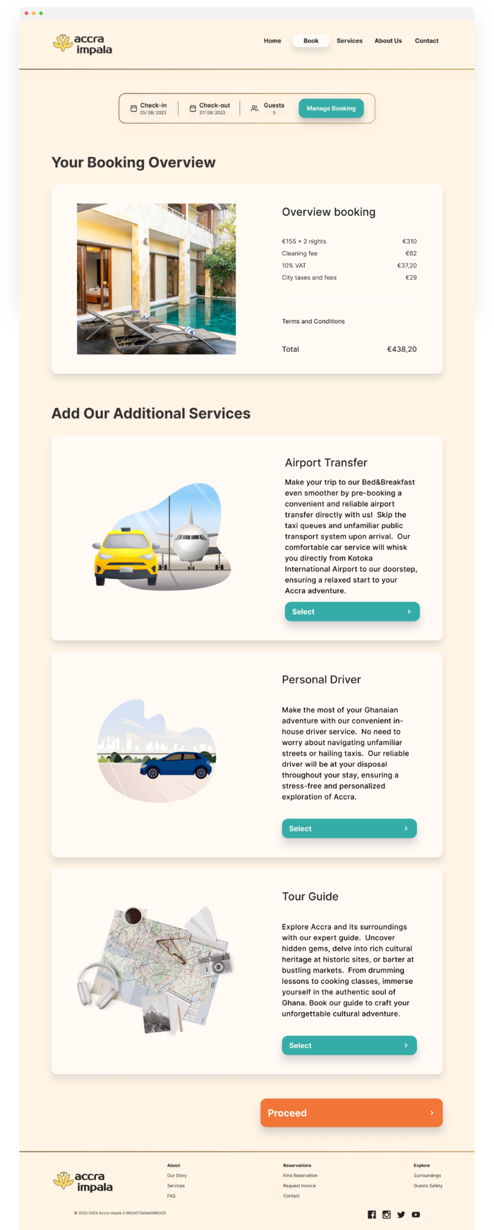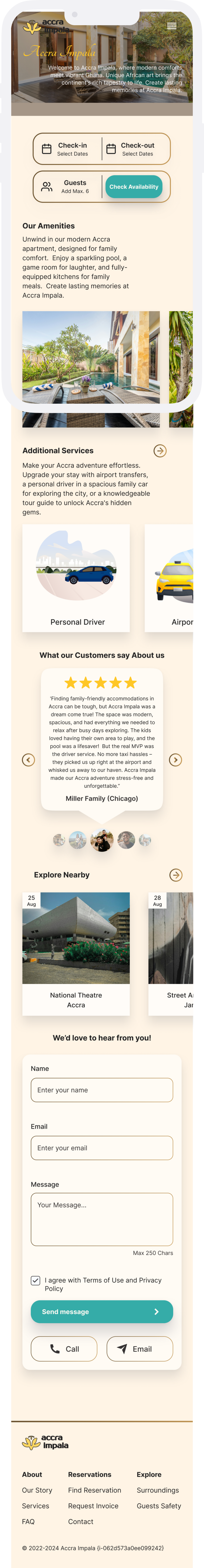 Kwame's Ghanaian adventure begins with the little story about Accra Impala, right on the homepage menu. This personal touch sets the stage for a memorable stay.