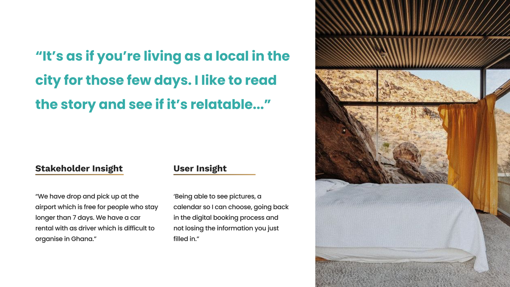 The project initiation involved extensive desk research into the client's business and competitive landscape. Our clients, an enterprising couple in their 30s, manage a recently established B&B in Accra, driven by a personal connection to Ghana.